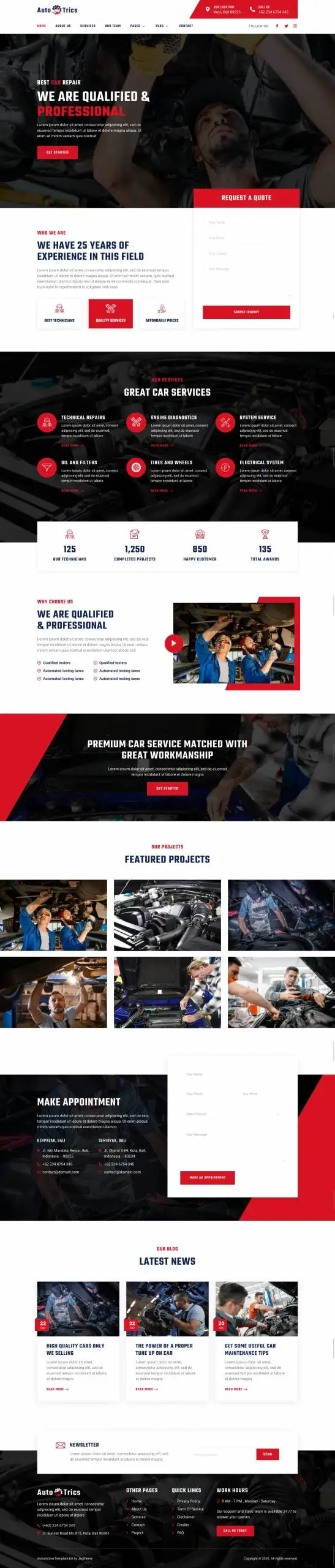 Autotrics是一个为汽车维修和汽车服务行业开发的WordPress企业主题,该主题采用红黑配色的简洁设计,突出了内容和服务。主题设计上,在网站图标和按钮上采用了红色设计,吸引用户注意的同时也不会因为大面积使用饱和色导致视觉疲劳。文字内容部分,主题采用了和黑色比较接近的深蓝色,符合行业特性和大多数用户的审美。