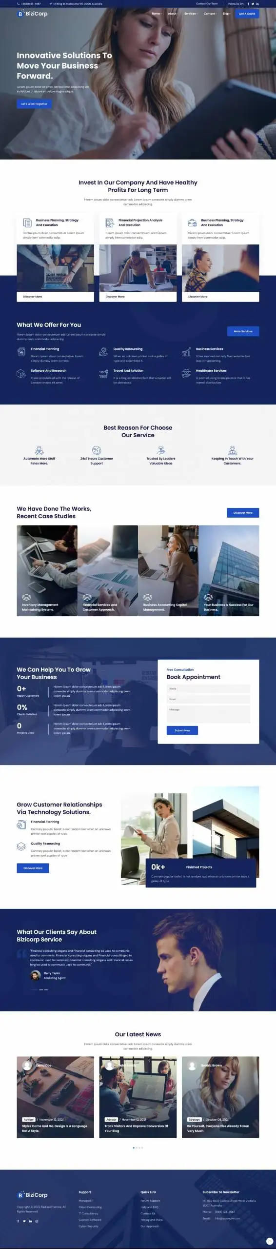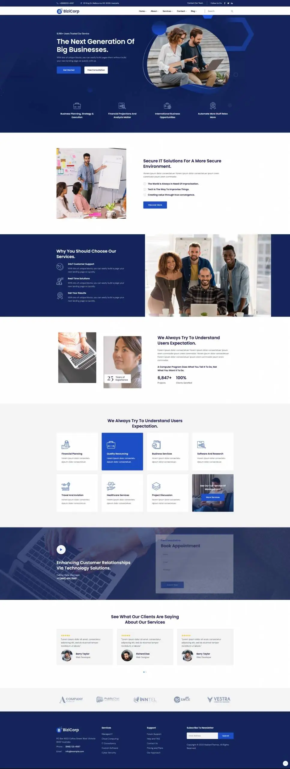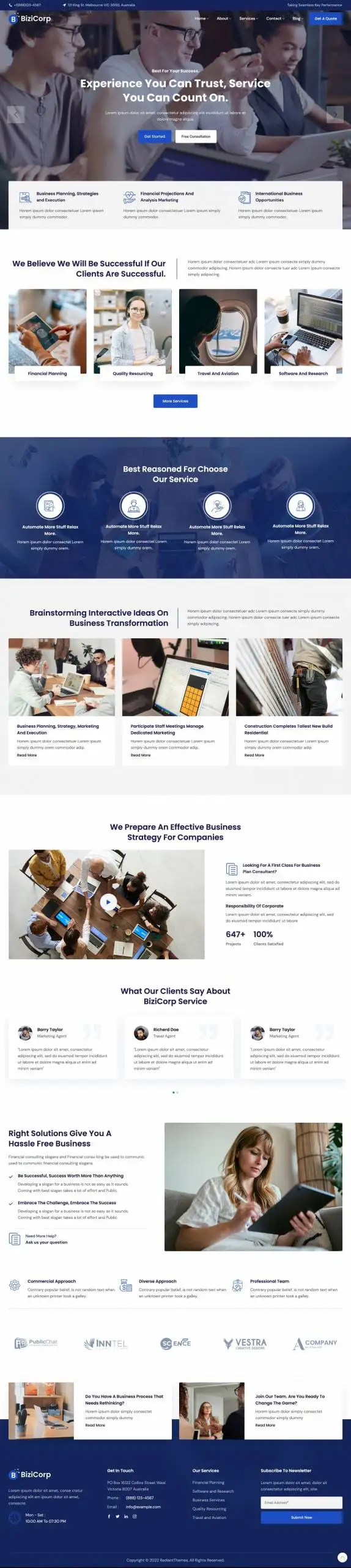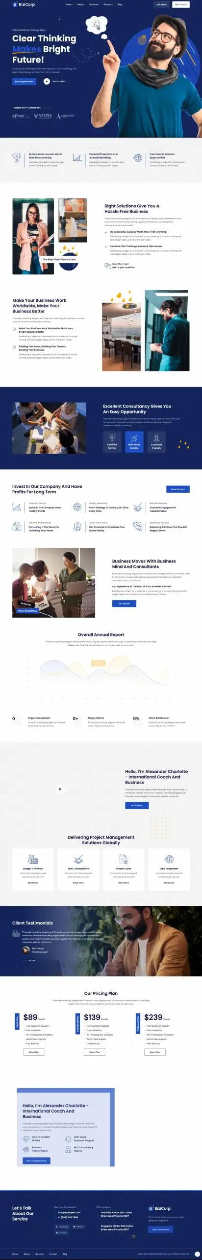 BiziCorp是发布于2022年初的一个高级主题,主题采用蓝色为主色调,适合咨询公司、保险公司、贷款、税务、投资公司等类型的企业使用。主题页面机遇Elementor构建,我们可以在主题设计的基础上灵活的修改现有页面或创建新的页面,设计出适合自己公司的网页。