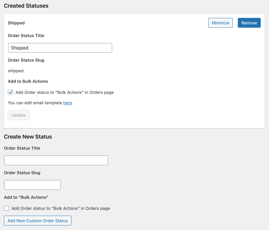 - 添加自定义订单状态:可以创建任意数量的自定义订单状态。