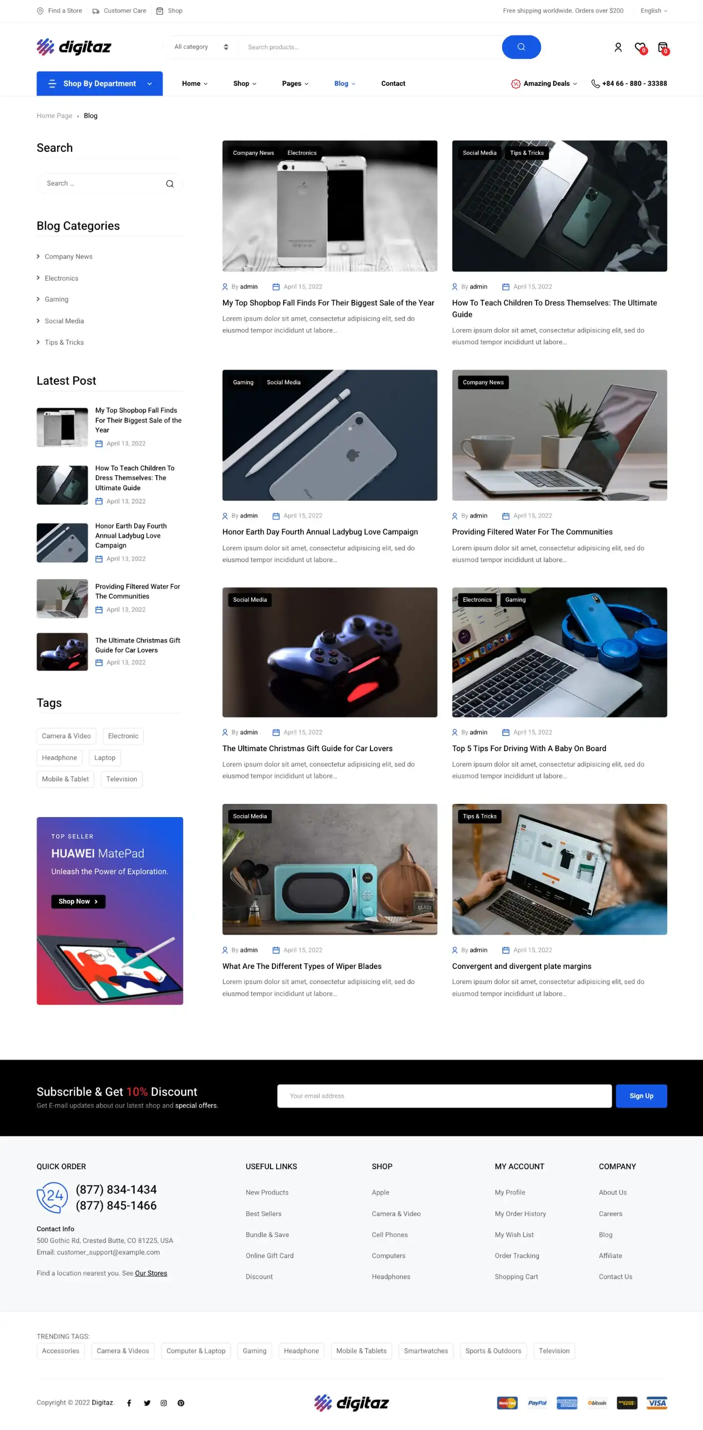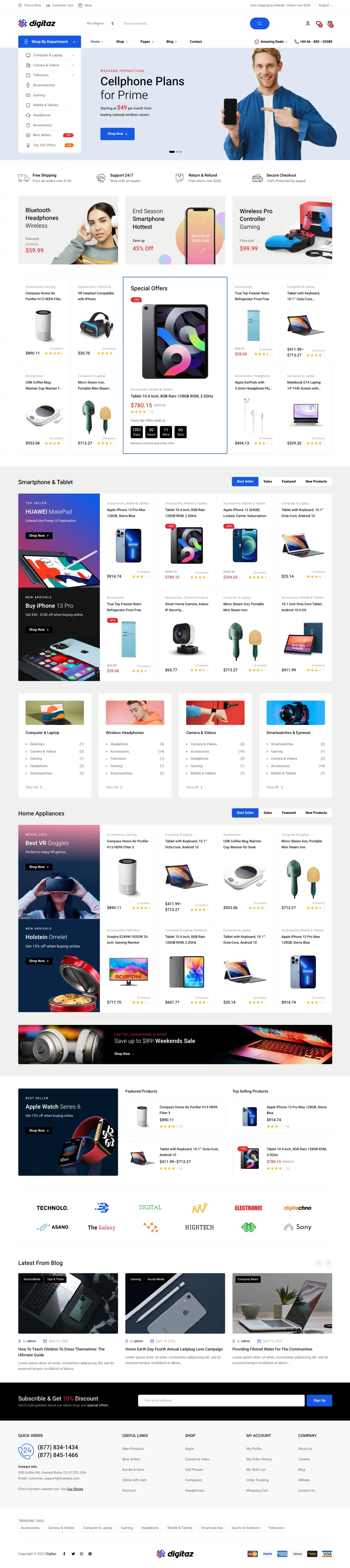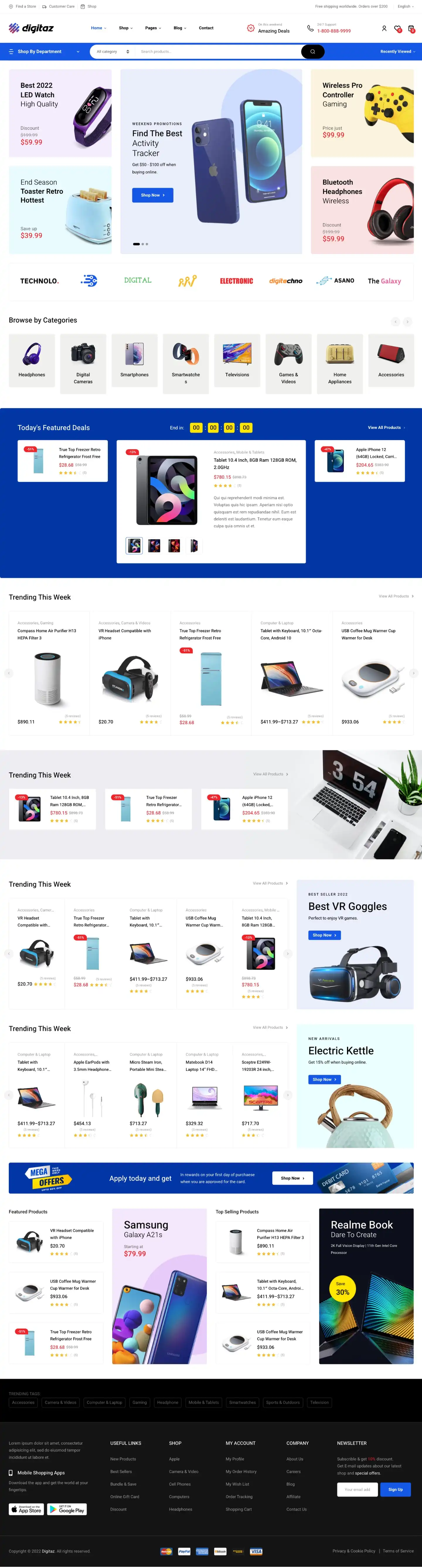 Digitaz 是一个高级的WooCommerce 主题。支持使用Elementor编辑器编辑页面,使用该主题,可以快速创建一个功能完整的WooCommerce电子商务网站,非常适合店主销售商品、科技产品、小工具和电子产品。