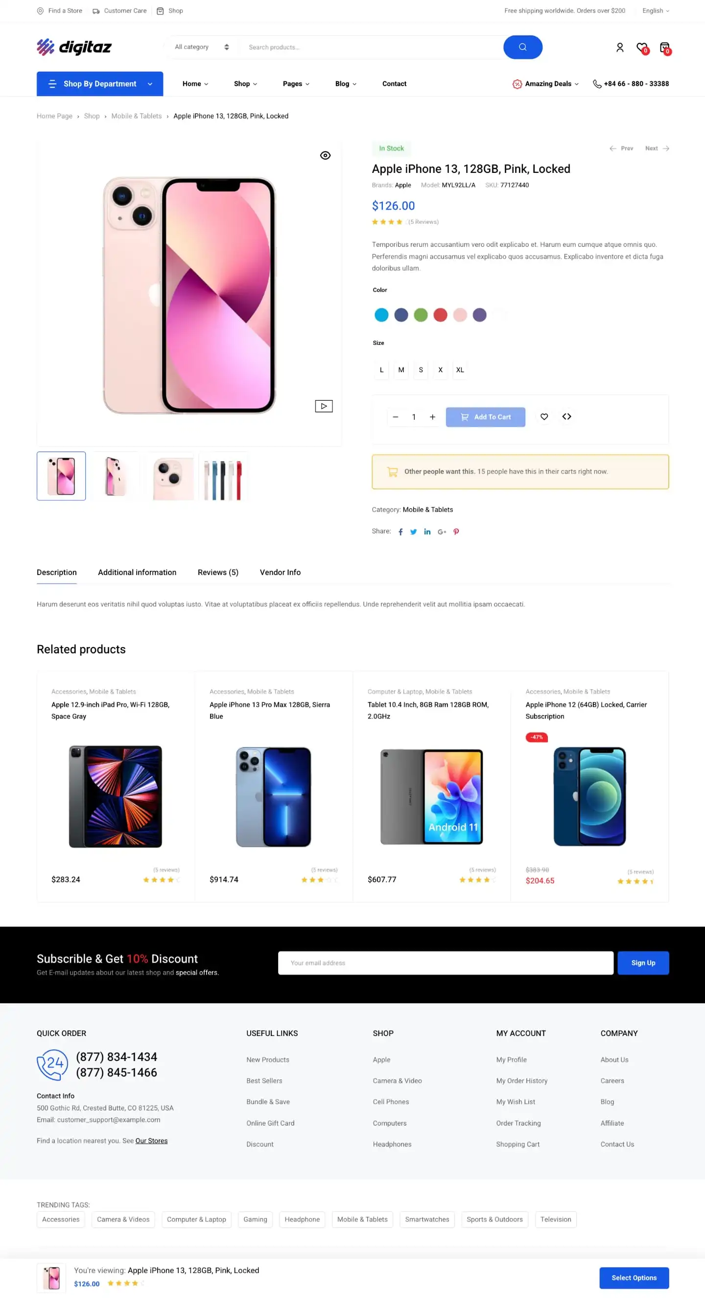 除了上面的重点特色功能,Digitaz主题还支持产品比较、愿望清单、快速预览、优惠倒计时等实用的电子商务网站功能。当然,作为一个完整优秀的主题,Digitaz对移动端的响应式支持也是非常完美的。推荐需要建设电子商务类型网站的科技型企业尝试一下。