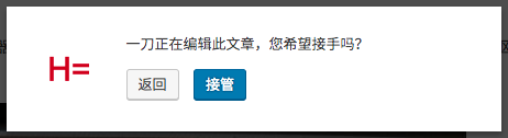 在 WordPress 后台,有用户正在编辑一篇文章的时候,系统会自动给这片文章加一个锁,当有另外一个用户想要同时编辑这篇文章的时候,如下图所示,会提示“ XXX 正在编辑此文章,您希望接手吗?”,这是一种保险措施,防止两个用户同时编辑一篇文章而导致文章版本冲突。