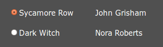 <td><input class=pref checked=checked name=book type=radio value=Sycamore Row />Sycamore Row</td>