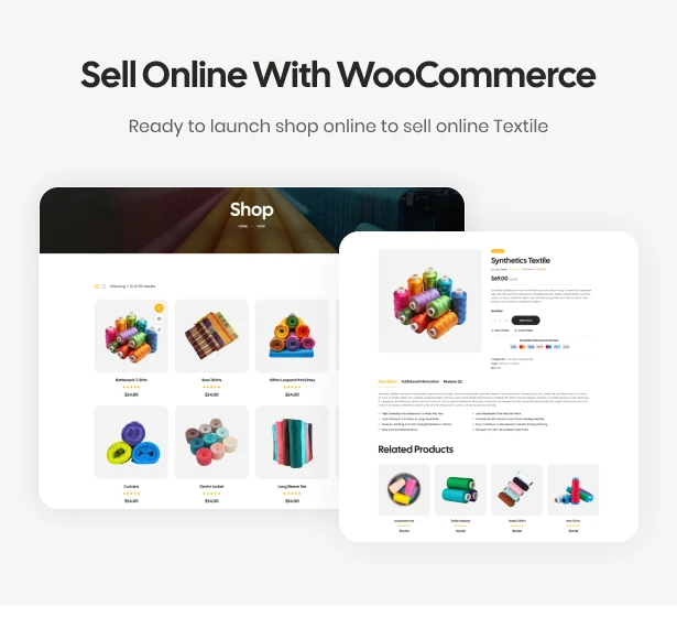 该主题深度集成了 WooCommerce 电商插件,让你可以直接在网站上销售纺织产品、面料样品或相关设备。该主题的产品展示页面特别适合纺织行业,可以清晰展示面料质地、颜色和规格信息。对于想要开展线上销售的纺织企业来说,这是一个完整的电商解决方案。