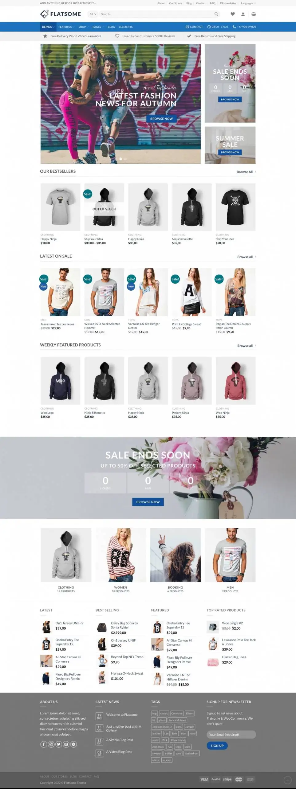 Flatsome 是一个专为WooCommerce设计优化的WordPress主题,该主题自发布以来,更新很积极。每次WooCommerce发布版本更新之后,Flatsome 主题就能够很快跟进。