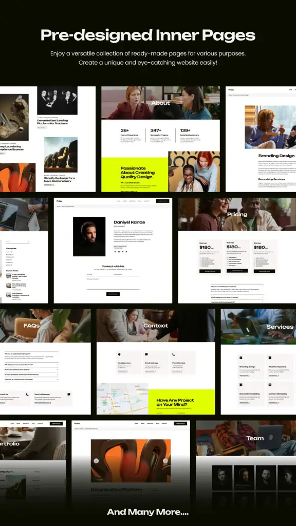 Frisk 主题包含多个精心设计的内页模板,使用者只需直接根据预设计的内页模板上传或修改内容,集成完成多个样式丰富的网站内页。