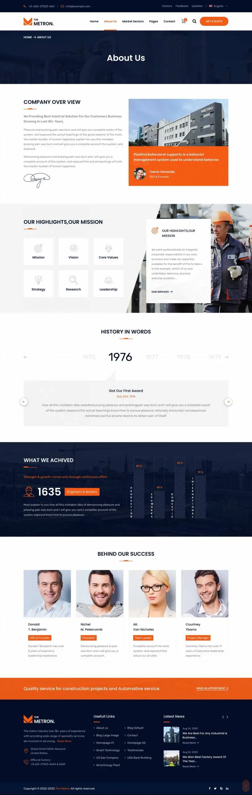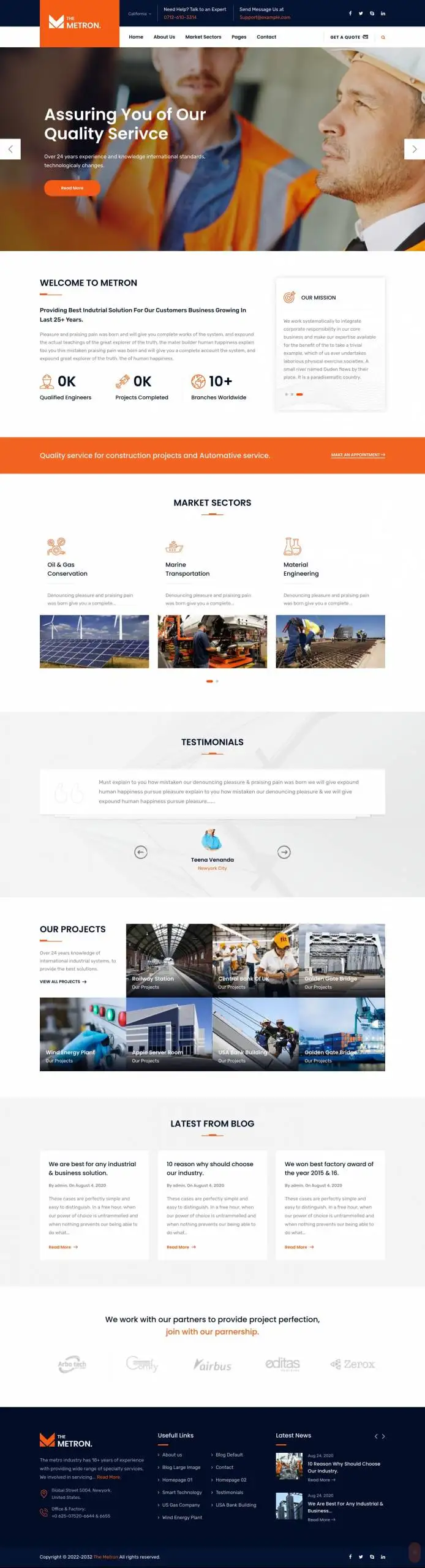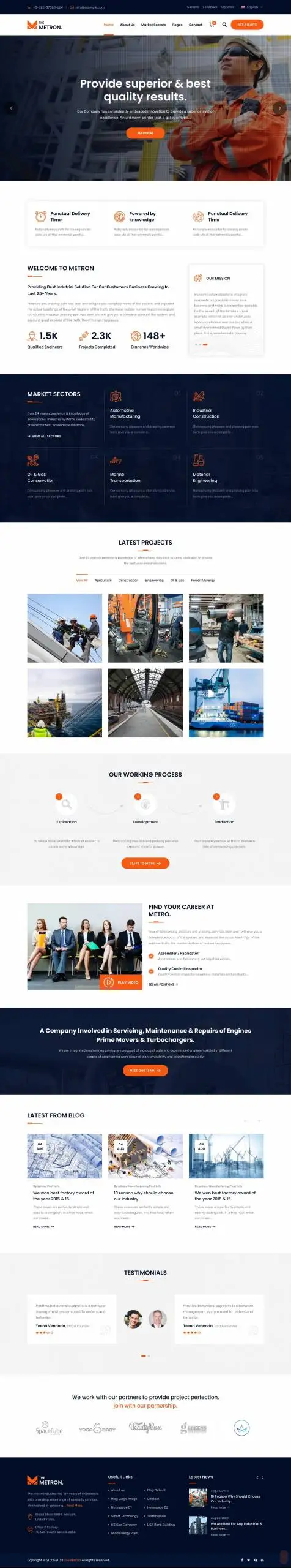 Metron 是专门为工业、工厂、建筑、工程、机械业务、商品业务、电力、铁路业务、飞机、船舶业务、石油和天然气业务、石油网站等行业制作的WordPress主题。