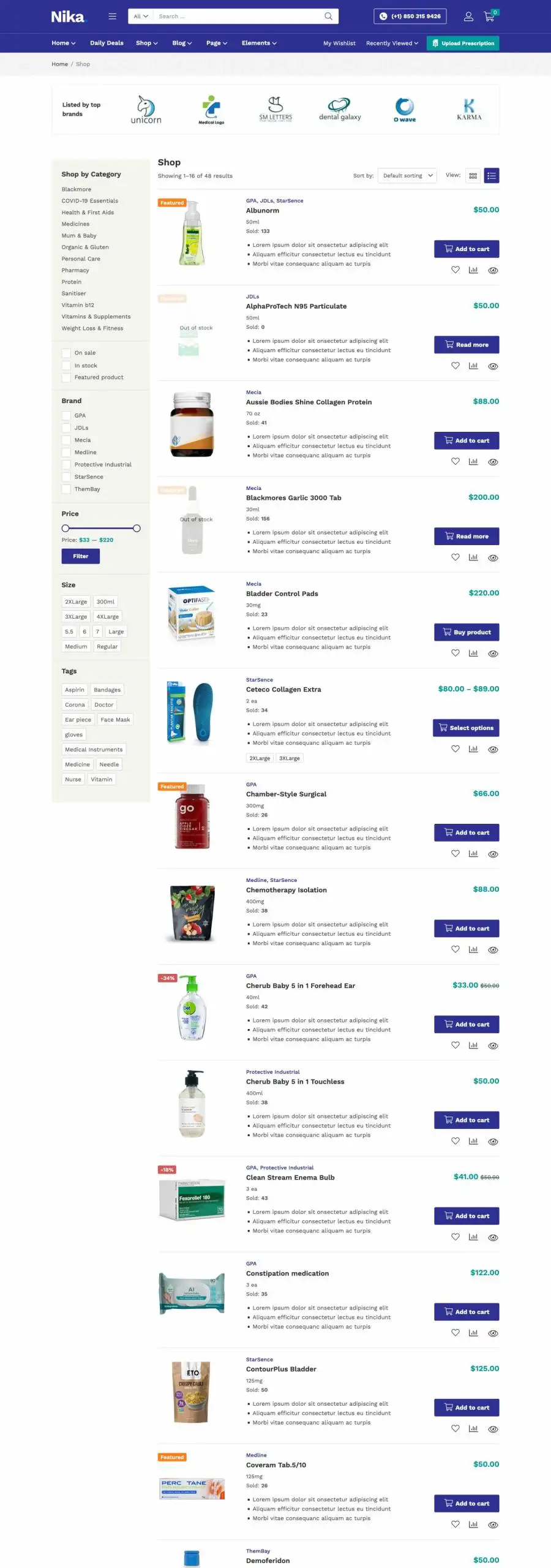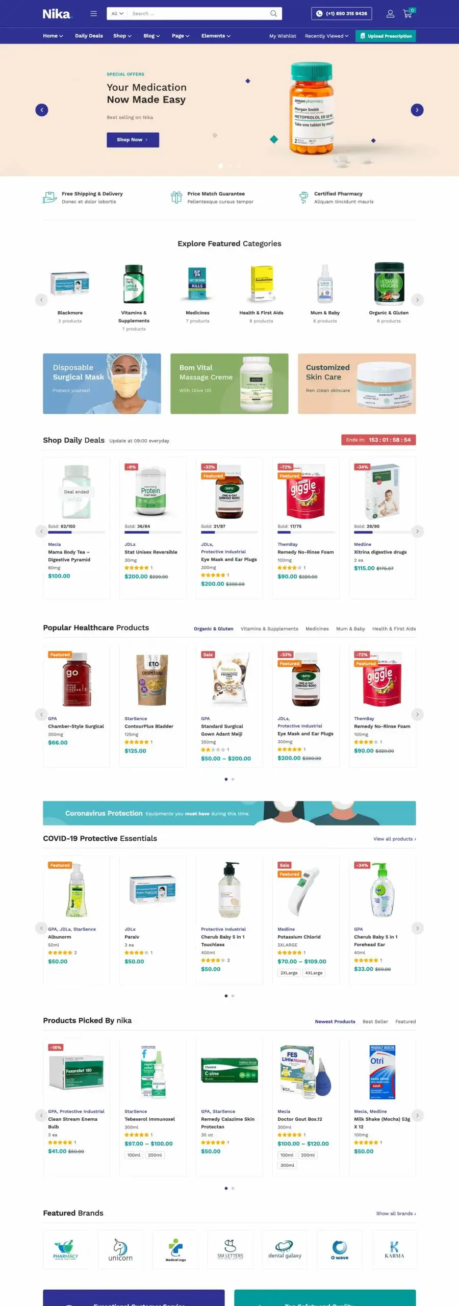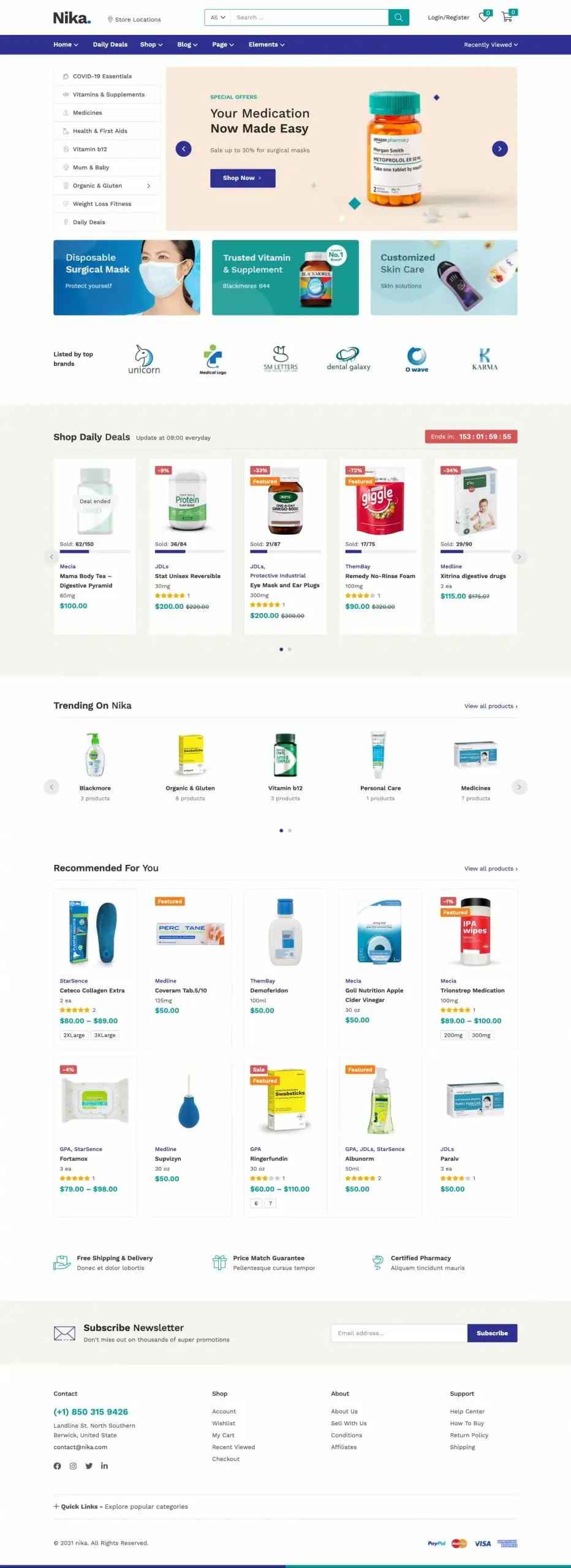 Nika是一个功能全面的WooCommerce医药健康主题,可以用来开发药品、医疗器械在线销售的网站。Nika主题风格简洁干净,可以使用Elementor对各个页面进行自定义。
