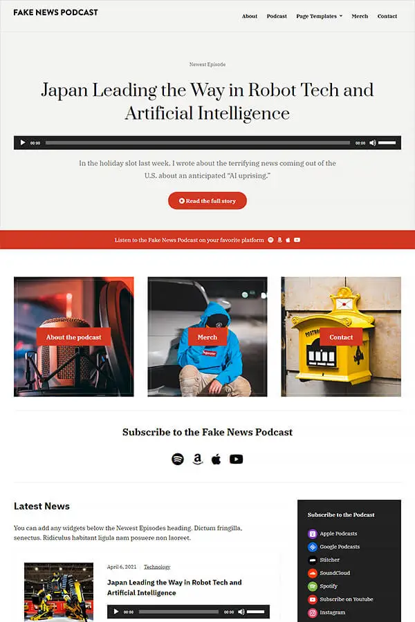 这不是一个功能非常高大上的主题,但对于博客类型的网站,这是一个比较合适的主题。如果您运营着一个内容丰富的播客节目,直接用这个网站搭建一个播客网站是一个明智的选择,毕竟,丰富的内容不需要花哨的设计来刷存在感。
