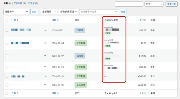 WooCommerce 美观简洁的快递物流跟踪插件,使用 17 Track 的 API,支持国内和国际快递。可以在客户邮件、客户订单详情、订单管理后台中显示订单轨迹。