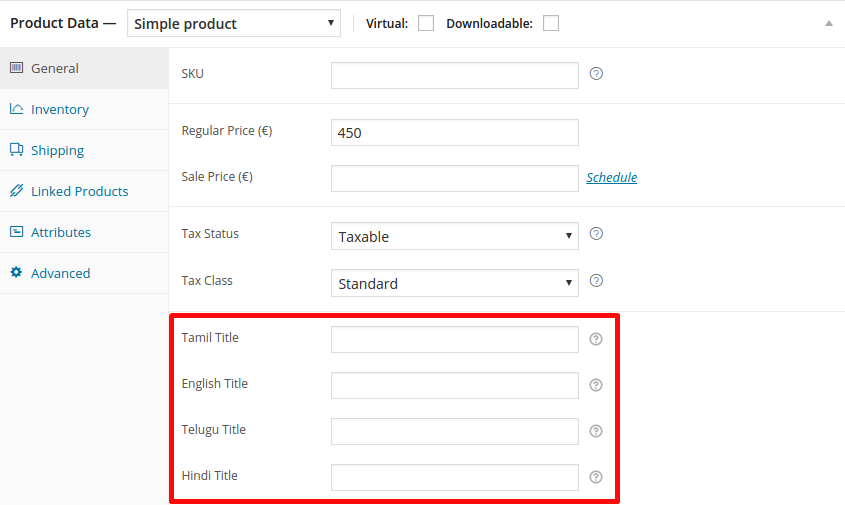 我们可以添加这些自定义字段到商品分类,商品和商品选项卡中(常规、库存、配送、联锁商品、属性高级)。
